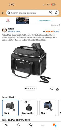 Petskd Top-Expandable Pet Carrier 18x13x9.5 Inches Southwest Airline Approved, Soft-Sided Carrier for Small Cats and Dogs with Locking Safety Zippers $50Bakersfield, CA