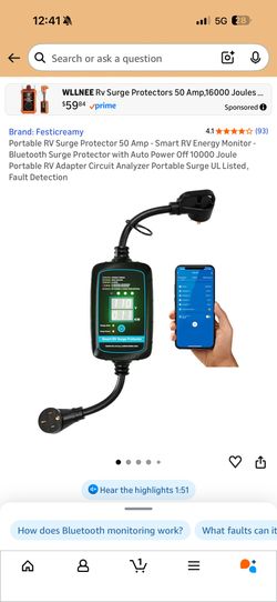 Portable RV Surge Protector 50 Amp - Smart RV Energy Monitor - Bluetooth Surge Protector with Auto Power Off 10000 Joule Portable RV Adapter Circuit A$75Bakersfield, CA