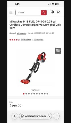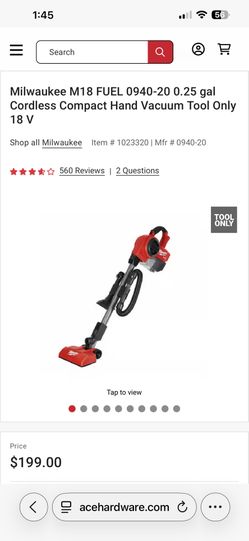 Milwaukee M18 FUEL 0940-20 0.25 gal Cordless Compact Hand Vacuum Tool Only 18 V (used)$130Diamond Bar, CA