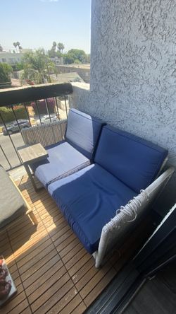 Outdoor Patio Loveseat – Wicker with Navy Cushions (54” x 30”) – Pickup Only$50West Hollywood, CA
