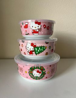 NEW Hello Kitty Pink Christmas Ceramic Tupperware set of 3$55Orangevale, CA
