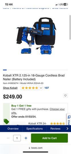 Kobalt XTR 2.125-in 18-Gauge Cordless Brad Nailer (Battery Included$200Duluth, GA