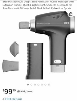 Breo Massage Gun, Deep Tissue Percussion Muscle Massager with Extension Handle, Quiet & Lightweight, 5 Speeds & 3 Heads for Sore Muscles & Stiffness R$50Duluth, GA