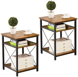 Modern Side Table Nightstands Set-of-2 - WOODYNLUX X-Design End Table with Storage, Bedside Tables Night Stand with Shelf, Accent Rustic Coffee Table $60Duluth, GA