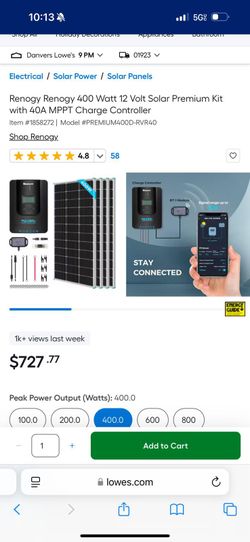 Renogy Renogy 400 Watt 12 Volt Solar Premium Kit with 40A MPPT Charge Controlar $436Chelsea, MA