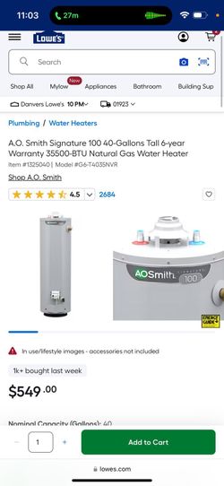 A.O. Smith Signature 100 40-Gallons Tall 6-year Warranty 35500-BTU Natural Gas Water Heater$330Chelsea, MA