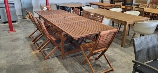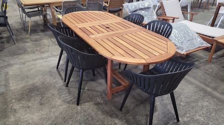 OPEN BOX 7PC Oval Extendable Dining Set – 100% FSC Solid Wood | Modern Outdoor Patio Furniture | Heavy Duty Commercial Grade | Closeout Deal | Deliver$699Hialeah Gardens, FL
