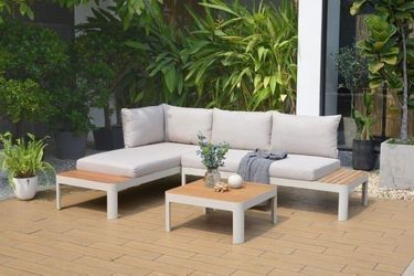 Brand New For 4 Person Patio Seating Sofa Set In Teak & Aluminum Ideal Furniture Set For Outdoor