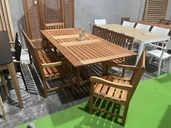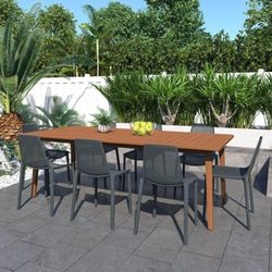 Brand New 9 Pieces Rectangular Extendable Dining Set 100% FSC Certified Teak Finish Wood, Ideal Furniture Set For Outdoor And indoors