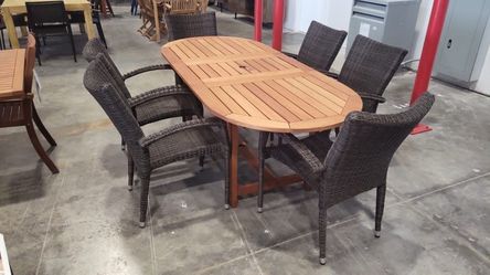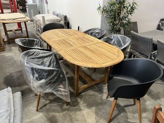 BRAND NEW Open Box 7 Piece Teak 100% FSC Solid Wood Oval Extendabele Table Patio & Outdoors Dining Set With Chairs