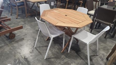 BRAND NEW OCTOGONAL TABLE 47" WITH 4 RECYCLED RESIN STACKABLE CHAIRS