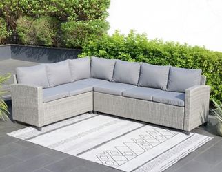 BRAND NEW 5-PIECE PVC RATTAN & ALUMINUM SET WITH SUNBRELLA BEIGE CUSHIONS