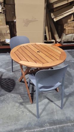 Modern 4PC Round Outdoor Dining Set – 31.5” FSC Solid Wood Table w/ Aluminum Base + 3 Hardwood Chairs | Brand New | Commercial Grade Heavy Duty | Pati$149Hialeah Gardens, FL