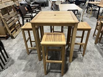 BRAND NEW 5 Piece 100% FSC Solid Teak Square Table With Bar Chairs Outdoor & Patio Furniture Bar Set