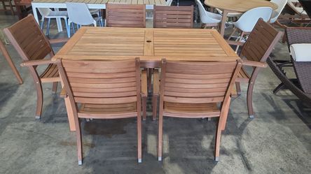 7PC Patio Dining Set – 67” Hardwood Table + Resin Chairs | Aluminum Legs | BRAND NEW | All-Weather Poly Top | Heavy Duty Commercial Grade | Delivery A$500Hialeah Gardens, FL