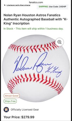 Nolan Ryan Houston Astros Fanatics Authentic Autographed Baseball with "K-King" Inscription 30/34$175Houston, TX