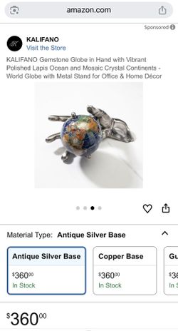KALIFANO Gemstone Globe in Hand with Vibrant Polished Lapis Ocean and Mosaic Crystal Continents - World Globe with Metal Stand for Office & Home Décor$115Houston, TX
