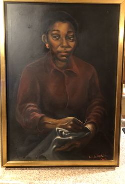 African American lady sewing old painting signed w Johnson 1963$3,500Indianapolis, IN