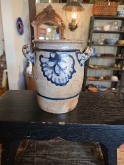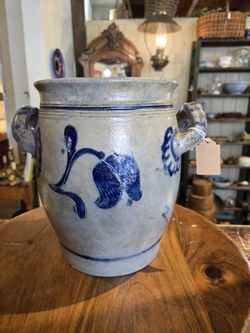 Antique salt-glazed stoneware crock with cobalt blue decoration. $75Bath, PA