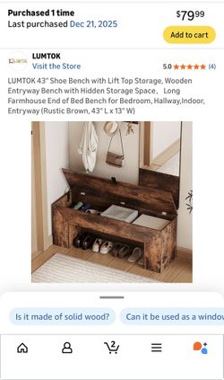 Brown Wooden Shoe Bench with Lift Top Storage$50Los Angeles, CA