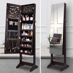 Jewelry Organizer Armoire Cabinet Standing Jewelry box w/Full body 47"Mirror & Large Storage Lockable Wooden Cabinet - BRAND NEW IN BOX$90Las Vegas, NV