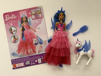 Barbie Unicorn Toy, 65th Anniversary Doll with Blue Hair, Pink Gown & Pet Alicorn$15Rosemead, CA