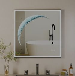 Callsky LED Bathroom Mirror, 32x32 inch Square Black Frame Mirror with 3 Color Lights, Half Moon Light, Defogger, Wall Mounted LED Vanity Mirror for B$100Katy, TX