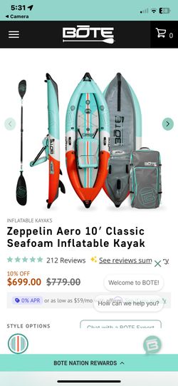 BOTE Zeppelin Aero 10' Classic Seafoam Inflatable Kayak$425Salisbury, NC