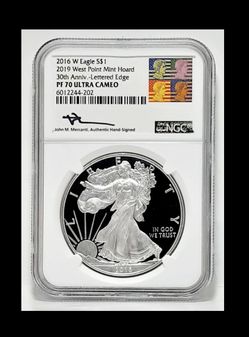 2016-W SILVER EAGLE 🦅 NGC PF70 👌 MERCANTI SIGNED 👀 FROM 2019 WP MINT HOARD$199Port Jeff Sta, NY