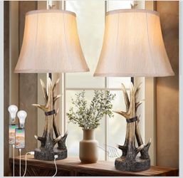 Table Lamps for Living Room Set of 2, Farmhouse Antler Western Bedside Lamp for Bedroom with 2 USB Charging Port, 3-Way Dimmable Resin Nightsta$60Diamond Bar, CA
