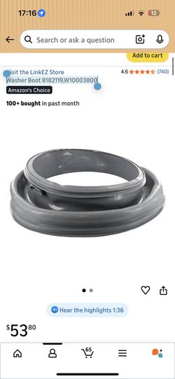 Washer Boot (contact info removed),W10003800$40Mercer Island, WA