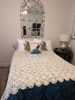 Vintage Handmade Crochet Bedspread – Full/Queen Cream Lace Blanket$150Burleson, TX