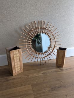 21" Rattan Wall Mirror and 2 Vases$30Fresno, CA