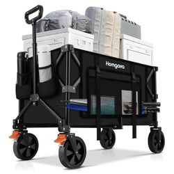 140L Collapsible Folding Wagon Cart with 350LBS Resting Weight Capacity, Heavy Duty Garden Cart with All-Terrain&Brake Wheel, Utility Wagon with Side $180Sterling Heights, MI