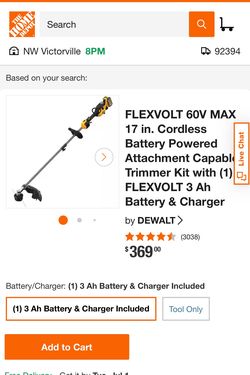 FLEXVOLT 60V MAX 17 in. Cordless Battery Powered Attachment Capable Trimmer Kit $300Victorville, CA