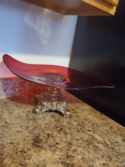 Rare 21” Antique Red Murano Glass Bowl Centerpiece Bronze Metal Base Italy Vase$80Eastamptn Township, NJ