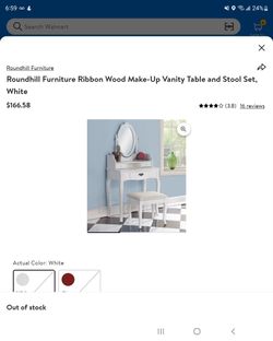 Roundhill Furniture Ribbon Wood Make-Up Vanity Table and Stool Set