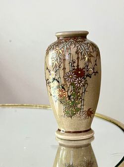 Small ASIAN HAND-PAINTED VASE ~Raised Flowers, Bamboo, Branches, Gilt, Red, Torquoise, Green $11Highland Park, IL