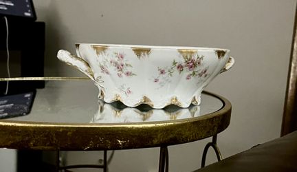 Theodore Haviland LIMOGES France Porcelain~Open Vegetable Bowl with Two Handles~Pink Rose Pattern ~18k Gold Accents~Probably 1930’s-‘40’s.$13Highland Park, IL