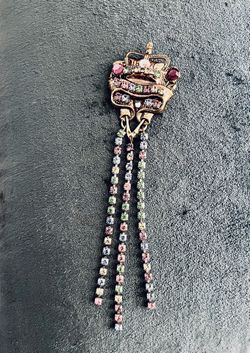 Vintage Queen’s Crown Brooch Pin Goldtone~Pastel Rhinestones & 3 Rhinestone Strands$9Highland Park, IL