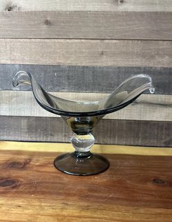 Large Art Glass Smokey Grey Pedestal Fruit Bowl Table Centerpiece 16"$50Frankfort, IL