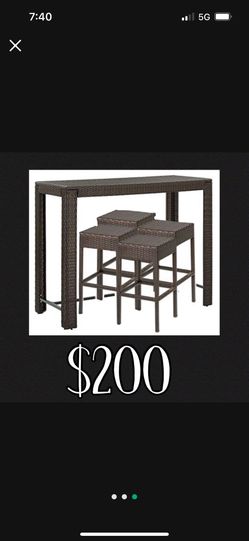 Immaculate Rattan Wicker Dark Brown Espresso Outdoor Counter Height Patio Bar Table + 4 Stools$200Euless, TX