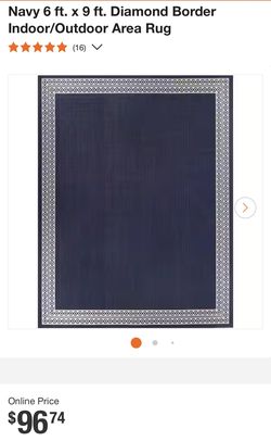 Hampton Bay Navy 6 ft. x 9 ft. Diamond Border Indoor/Outdoor Area Rug$65Riverside, CA