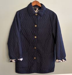 Salvatore Ferragamo Vintage 90s Size Large Navy Blue Quilted Dragonfly Jacket$350Bull Valley, IL