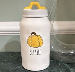 Rae Dunn “blessed” White and Orange Pumpkin Tall Ceramic Canister with Lid$35Bull Valley, IL