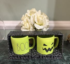 Rae Dunn Artisan Collection Ceramic Green Jack-o-lantern and “boo” Mug Set$20Bull Valley, IL