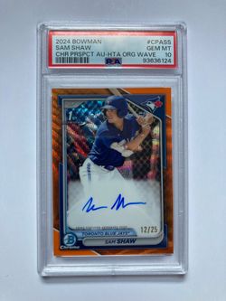 Sam Shaw 2024 Bowman - Chrome Prospects Auto-HTA Orange Wave /25 #CPA-SS PSA 10$1Manalapan Township, NJ