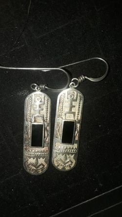 Genuine Sterling Silver 925 Black Onyx Tribal Native American Mexico Earrings$80Sacramento, CA