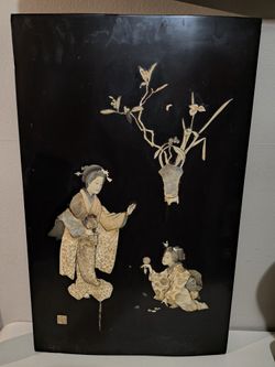 Antique Japanese Bone, Ivory and Mother-of-Pearl Inlaid Black Lacquer Decorative Panel, Meiji$40Miami, FL