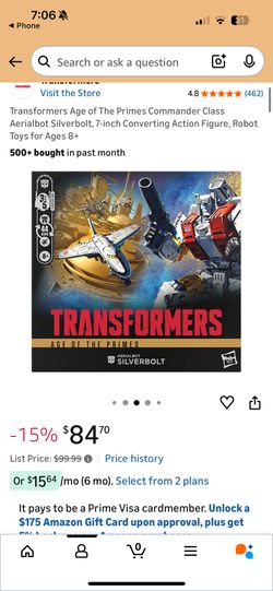 Transformers Age of The Primes Commander Class Aerialbot Silverbolt, 7-inch Converting Action Figure, Robot Toys for Ages 8+$45Victorville, CA